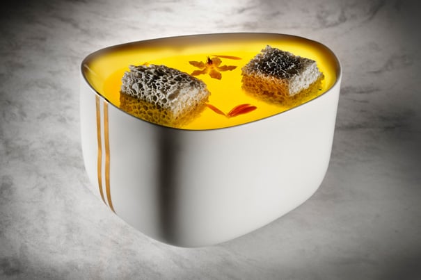 Gourmet Guru Michelin star chef Juan Mari Arzak, thinks Molecular Cooking is the next step in gastronomical heaven. Presented here are three design concepts – Lunar Eclipse (bowl), Fama (long plate) and Bocado de Luz (serving plate), that take culinary expertise to celestial planes. Juan Mari & his daughter Elena Arzak feel that presentation skills not only entice the palate but also dynamically alter the sensory experience during a meal. “The simple act of placing food on the plates or pouring liquid into the bowl triggers sensory stimuli and causes them to react.” Juan Mari Arzak says, “Molecular gastronomy has developed from a handful of exponents into a global phenomenon. It has led to the adaptation of scientific laboratory equipment and the invention of new kitchen technology, which makes it a small step to explore the presentation of dishes. The combination of our food creations on the multi-sensorial bone china concepts adds an extra dimension to the dining experience.” Images Courtesy The Philips Design Food Probe Project. Designers: Philips Design |