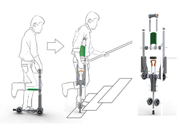 What designer Dat Huynh does here is take that extra step, don’t mind my word use. Made specifically for people with non-weight bearing lower leg injuries. Made for people to get around quick! Scoot around! With less strain and fatigue on the body than the usual one-crutch.