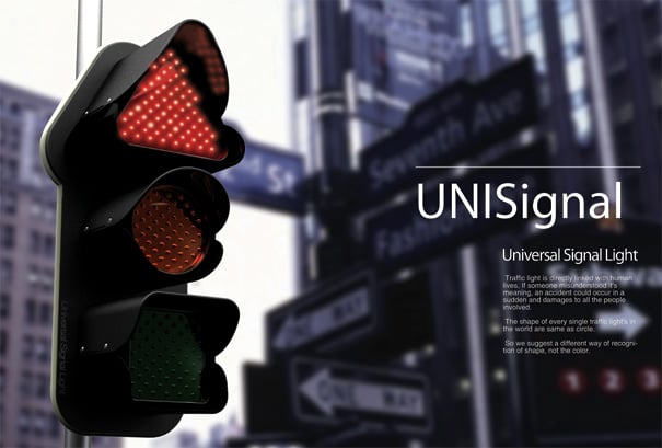 For the greater good of mankind I’m willing to do my bit and learn new traffic rules. If it saves a life or time, then why not! What Uni-Signal here is saying, that we have been using round traffic lights for ages now, with only the red-amber-green-colors for aid. How about prepping the system and broadening the spectrum of usage (by colorblind people) and change the shape of the lights! Triangle-Red-Stop, Rectangle-Amber-Stay, Round-Green-Go! If nothing else, it looks swanky and now we can teach tiny-tots shapes and colors in one go!